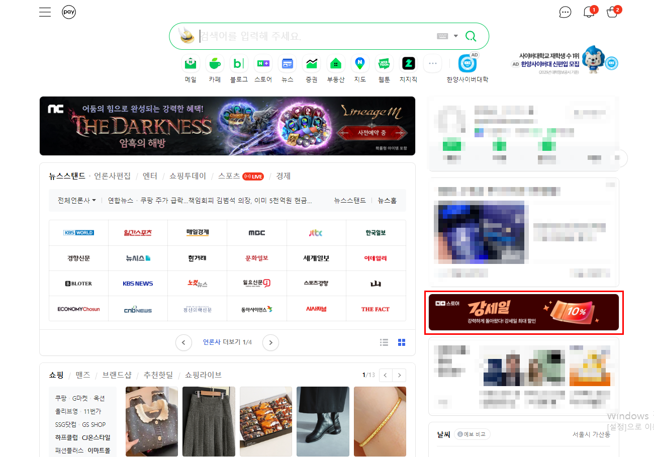 요즘 네이버 메인만 들어가면